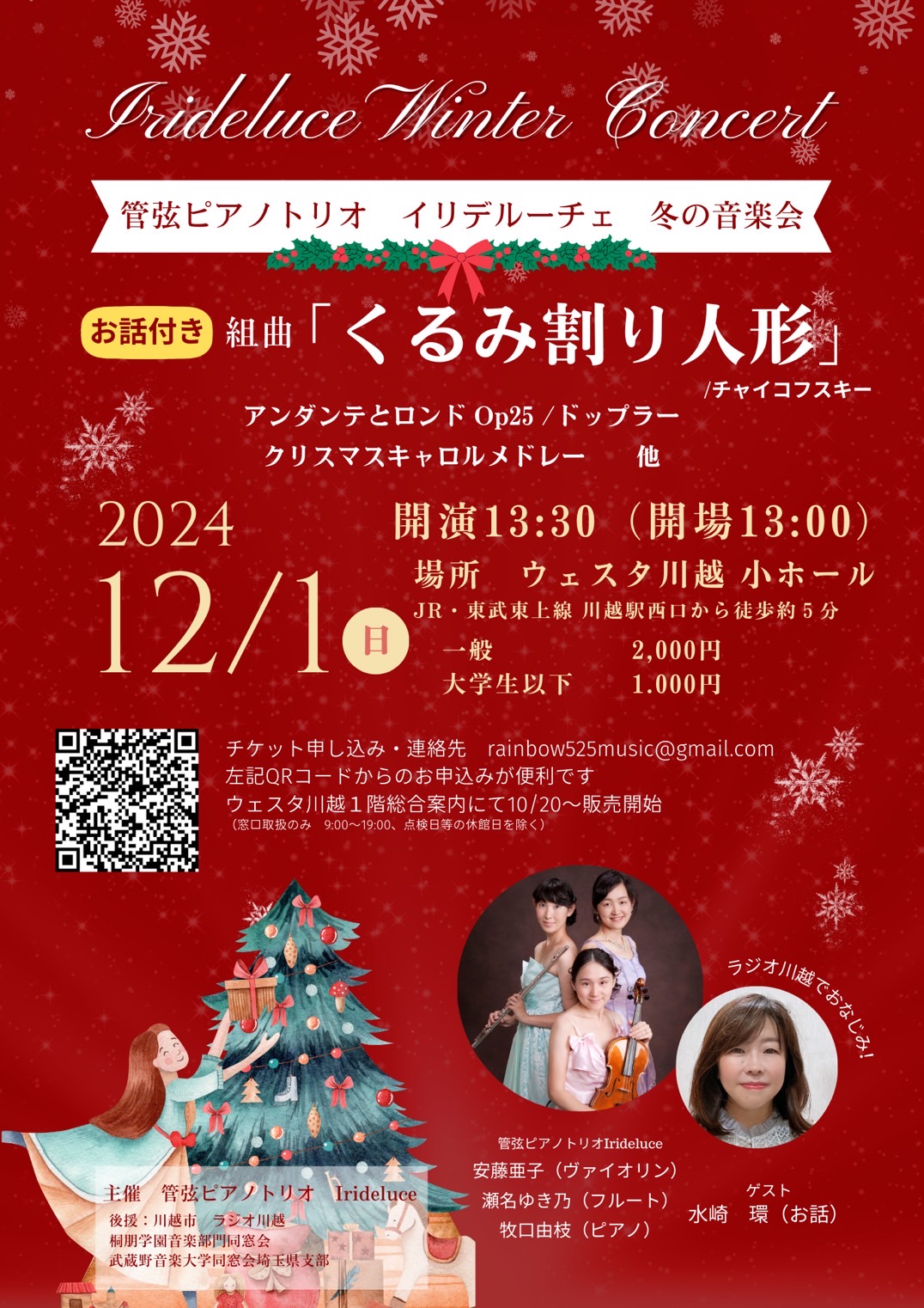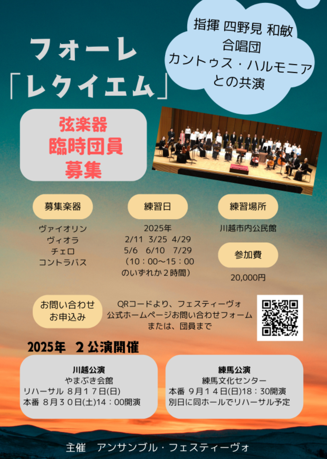 チラシのQRコードより、または、rainbow525music@gmail.com