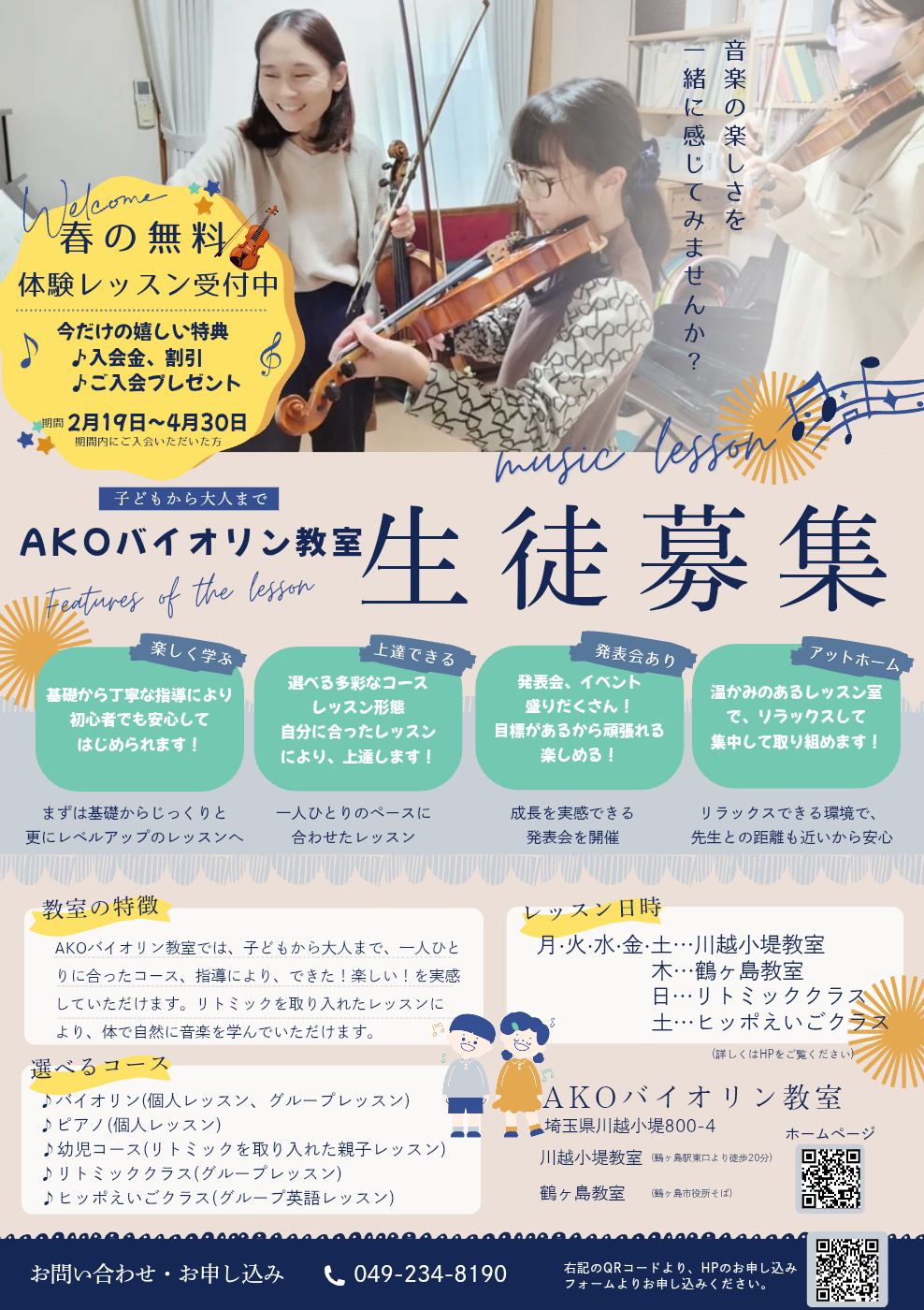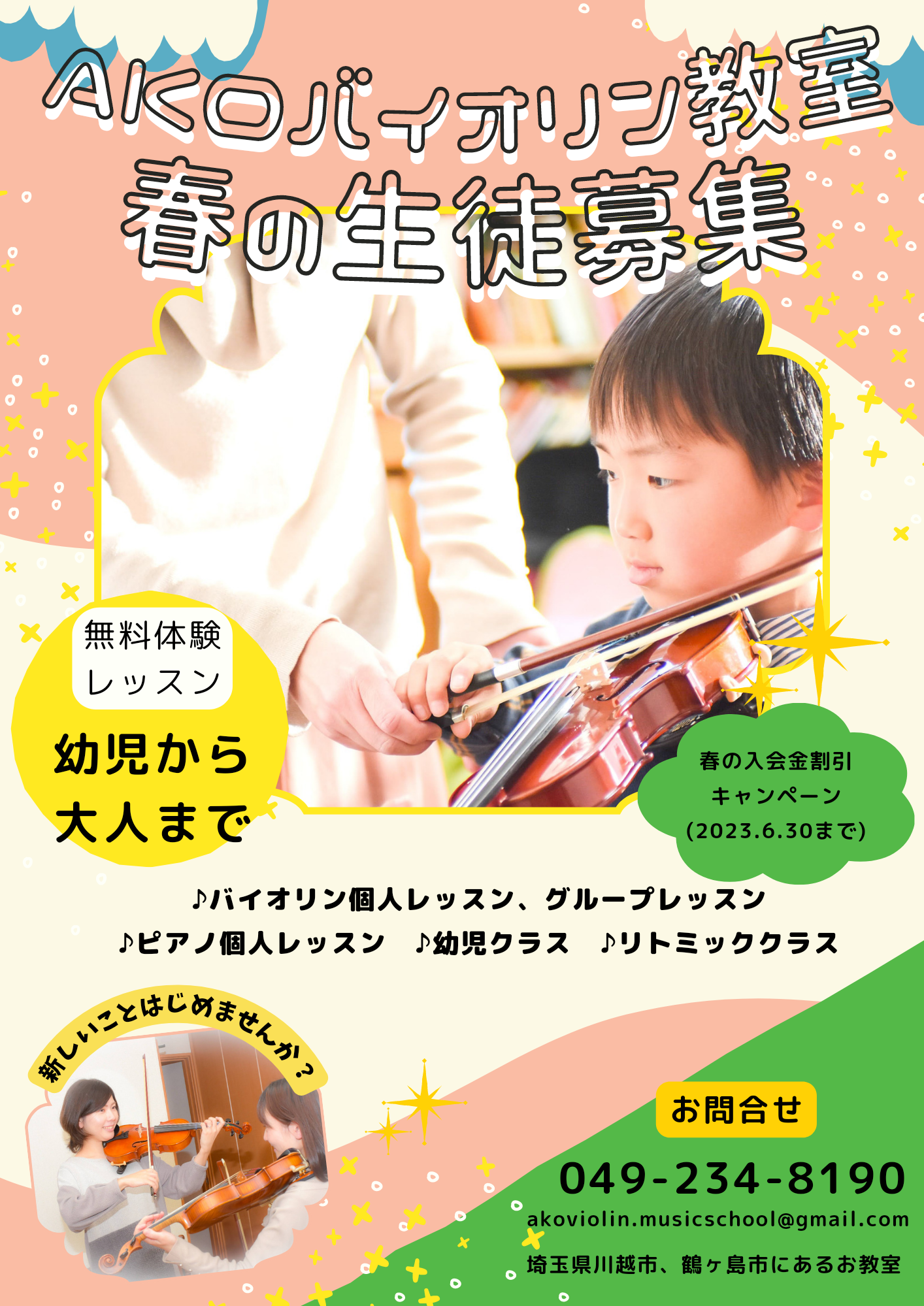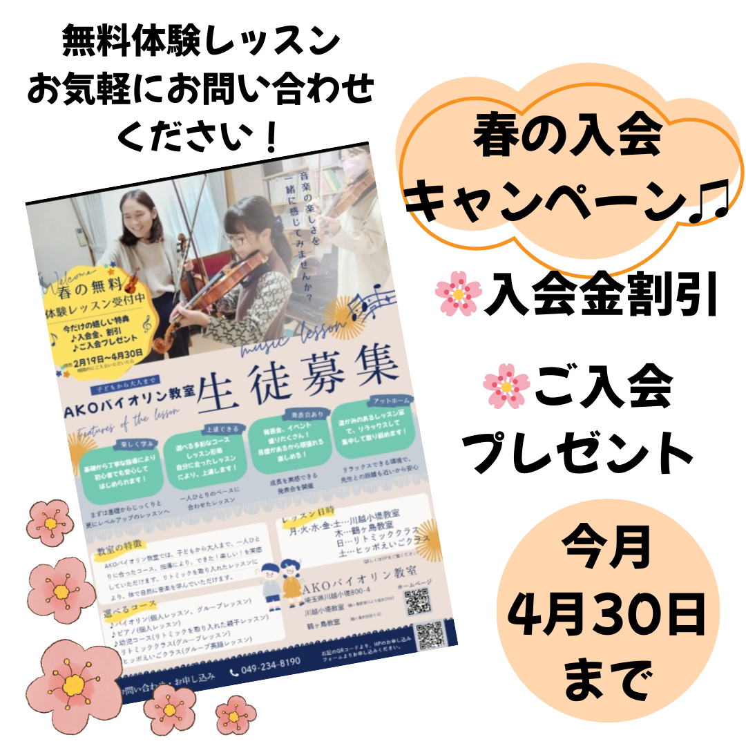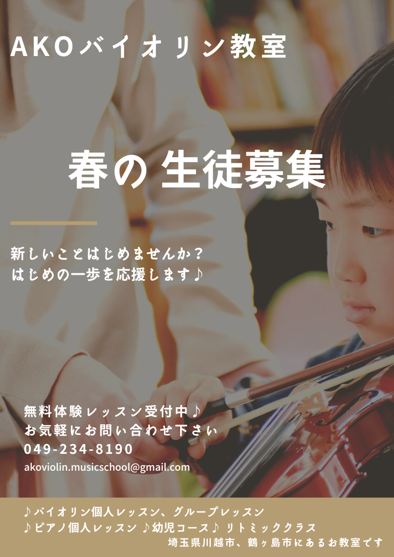 AKOバイオリン教室、春の生徒募集のお知らせです。