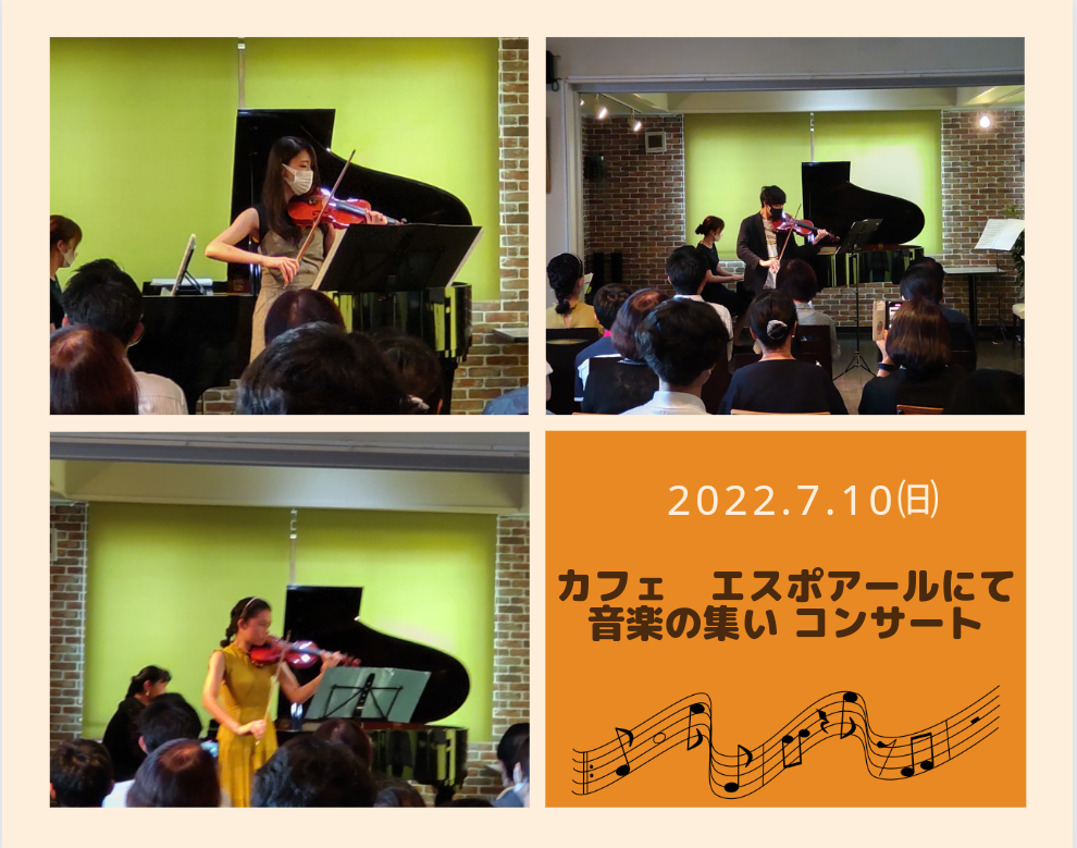 先日、7月10日㈰に、カフェにてコンサートが開かれ、AKOバイオリン教室の生徒さんに3名ご出演いただきました。