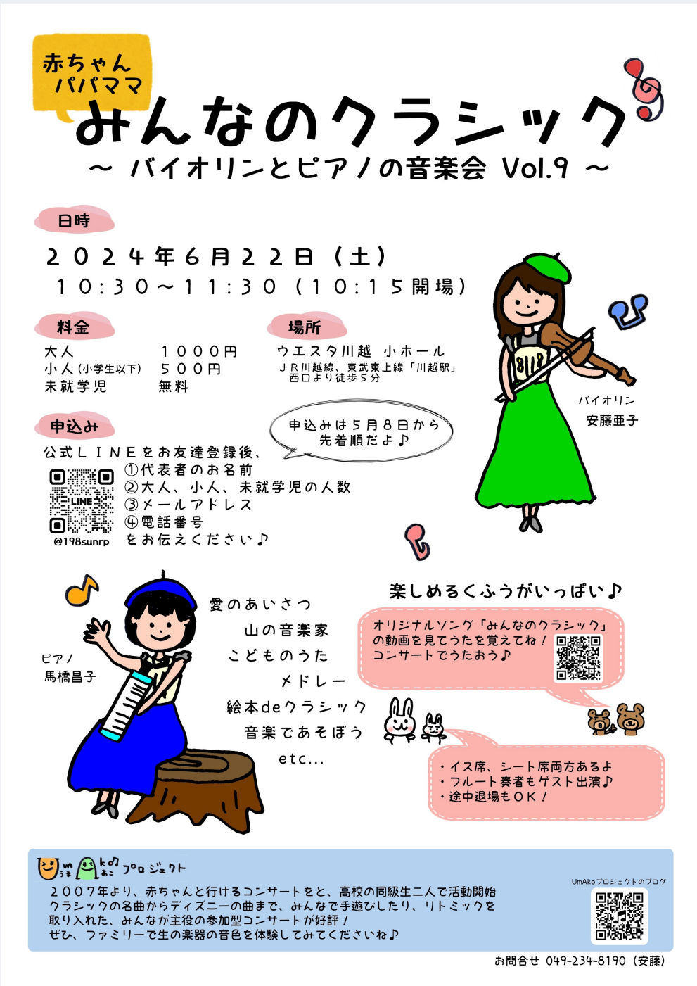 こんにちは!私が出演する0歳から参加OKのファミリーコンサートのお知らせをさせていただきます!