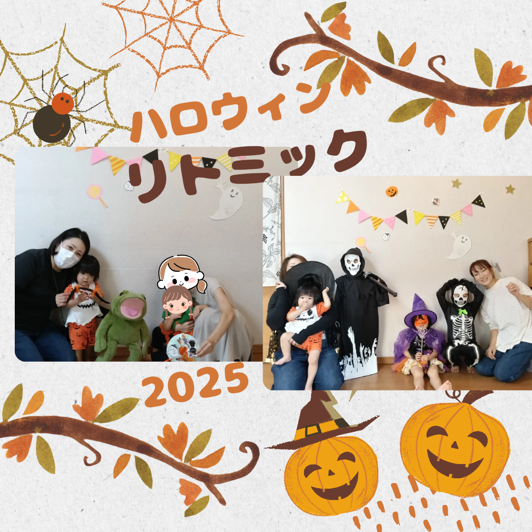 少しずつ涼しくなり、秋が深まってきました。グループで行っているリトミッククラスでは、ハロウィンリトミックを行い、とても盛り上がりました!ハロウィンといったらおばけや、魔女やガイコツ!!少し怖がりながら、楽しんで活動してくれました!リトミッククラスは0〜1歳よちよちクラス、2〜3歳てくてくクラス、4〜5歳じゃんぷクラス、小学生クラスがあり、年齢に応じて活動を工夫しています!リトミックでたくさん身体を動かしたあとは、工作をしたり、バイオリンの演奏に合わせてマラカスを振ったりと、様々な経験をしていただけます。そして、今回のハロウィンリトミックのように、季節のイベントも盛りだくさん!お子様はもちろん、親子で楽しんでいただいています!!